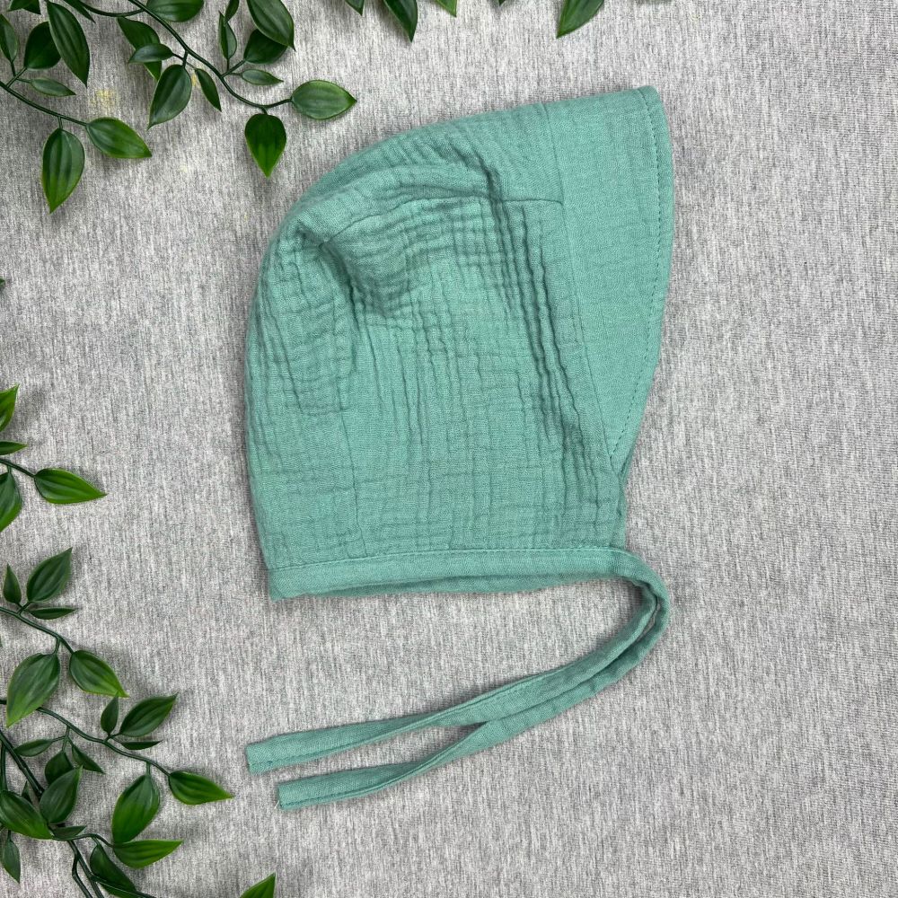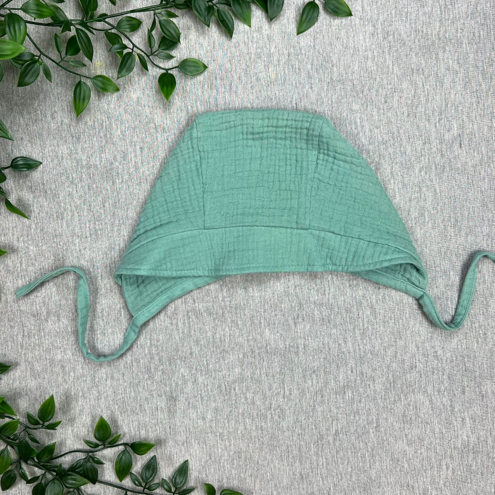 Muslin baby hat with strings, Green