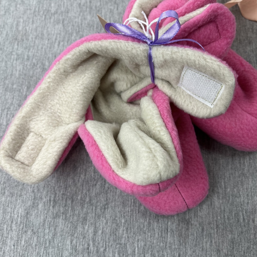 Warm and soft double fleece booties for baby.