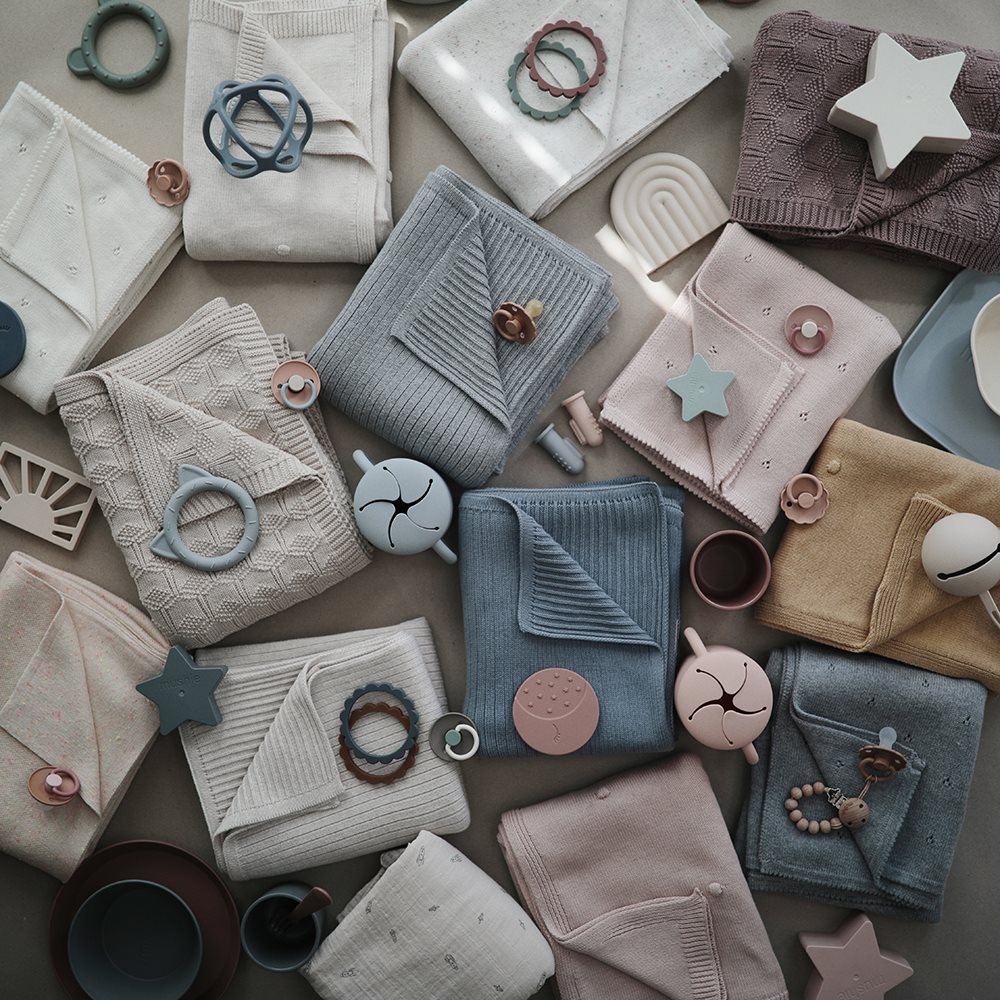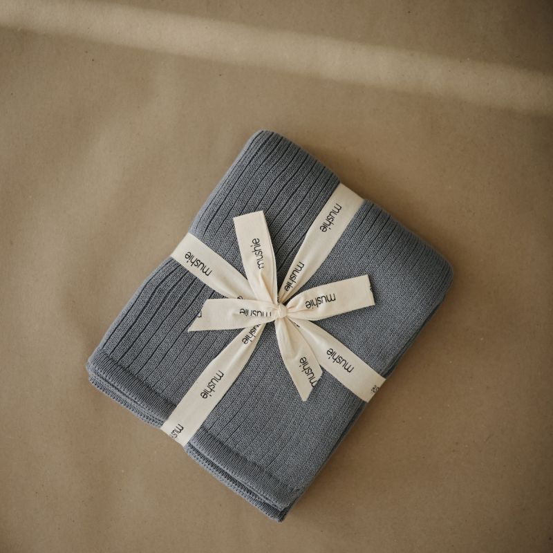 Mushie Knitted Baby Blanket Ribbed - Gray melange