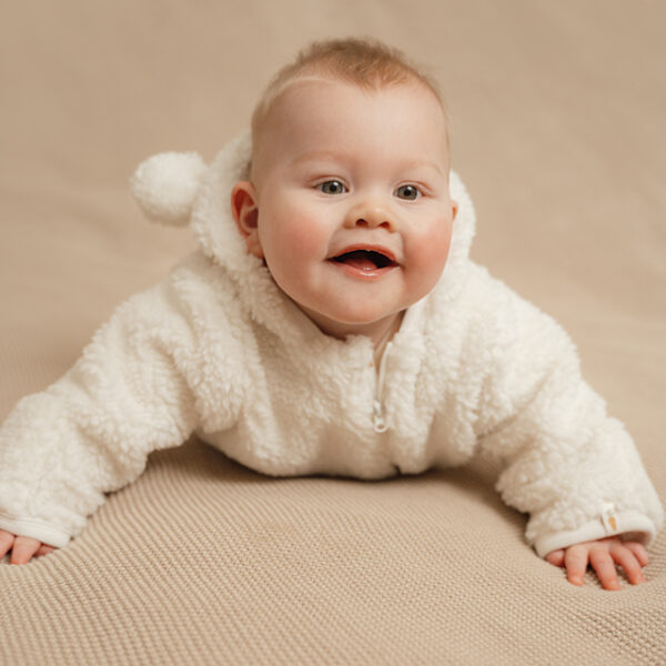 A warm and very soft plush jacket that will warm your baby on colder evenings. It is comfortable and has buttons in the front.