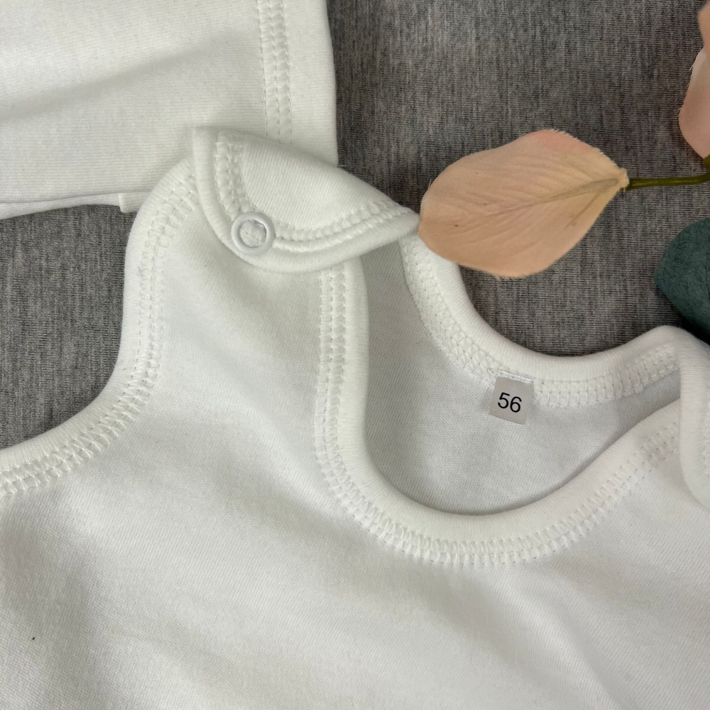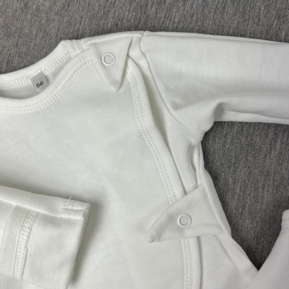 All clothes are made of soft, GOTS certified organic cotton jersey fabric. Wide and flexible belt part for pants, especially comfortable for the child as it is not tight against the little belly. The bodysuit not only feels nice against the baby skin, but is also comfortable to wear and use – with front and side snaps so the bodysuit does not have to be pulled over baby’s head.