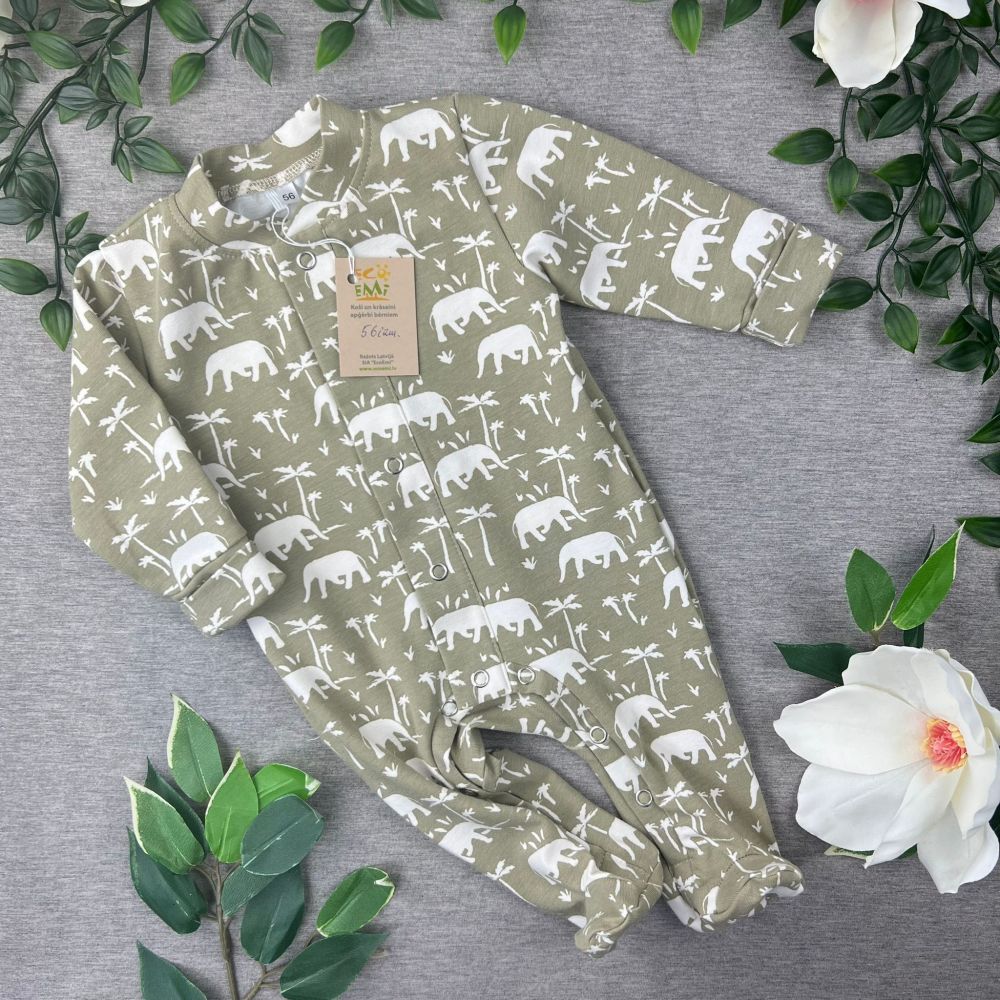 Eco cotton baby long onesis-pajamas, SAFARI