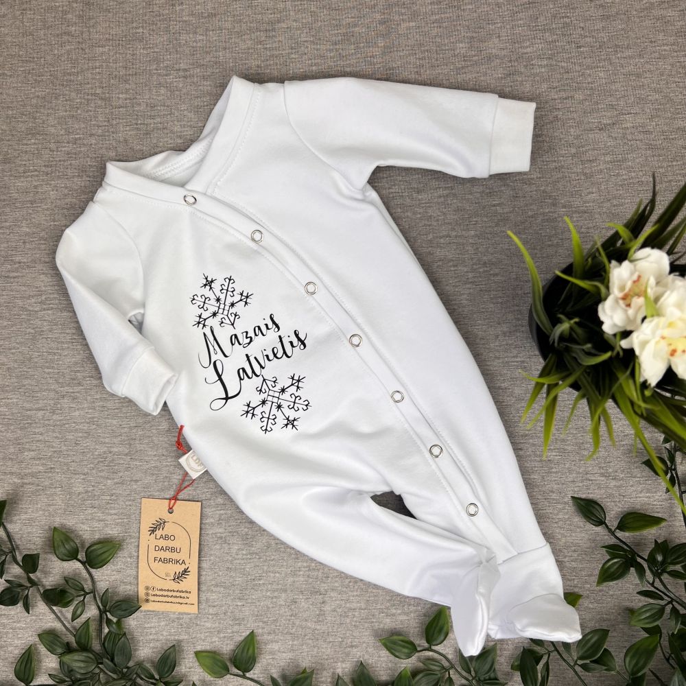 Looped cotton long onesis-pajamas,MAZAIS LATVIETIS, white