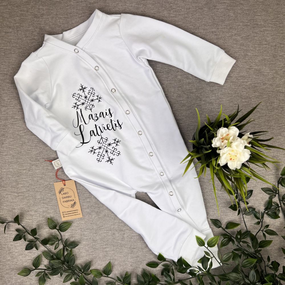Looped cotton long onesis-pajamas,MAZAIS LATVIETIS, white