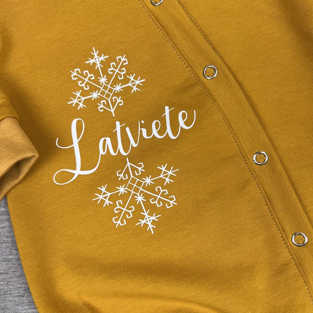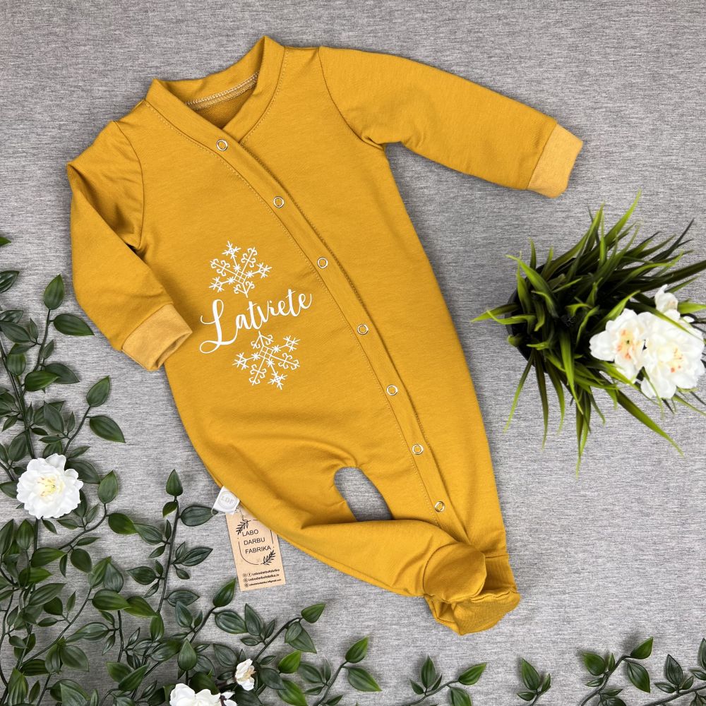 Looped cotton long onesis-pajamas,MAZĀ LATVIETE, mustard
