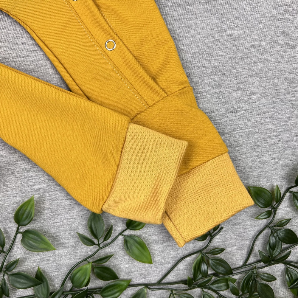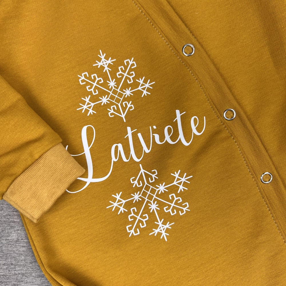 Looped cotton long onesis-pajamas,MAZĀ LATVIETE, mustard