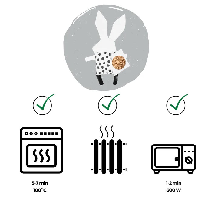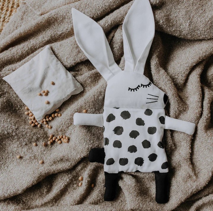 Bed warmer the BUNNY is a microwavable cuddly toy with a removable cherry stone hot/cold pack for children from 1 to 7 years