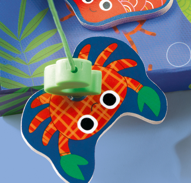 The classical fishing game with 2 fishing rods for playing in a pair. What colour fish will you catch? A fun magnetic fishing game with 12 pieces and 2 fishing rods. The fishes have a metallic part that is attracted by the magnet which is inserted totally in the hook for total security. Children use the rods to catch the magnetic wooden fish. Stimulates children’s coordination and dexterity.