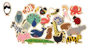 A sturdy box of 42 beautiful wooden animal magnets.