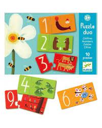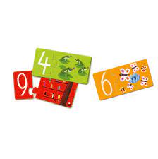 A colourful number association game. Match the numeral on one piece to the number of things in the picture on another. Puzzle to help the child with their very first learning experience. Made from sturdy cardboard packaged in attractively colored box.
