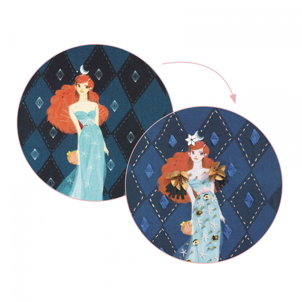 An introductory embroidery kit for children to add threads, beads and sequins to complete the elegant party dress. A very fashionable introduction to embroidery with pre-printed fabrics to guide children through their creation. The kit contains a detailed colour instruction booklet, 1 needle, 2 threaders, 2 packs of coloured threads in blue and pink, an embroidery hoop (diameter: 10 cm) and plenty of beads and sequins - everything needed to make a beautiful textile picture. Suitable from 8 to 14 years.