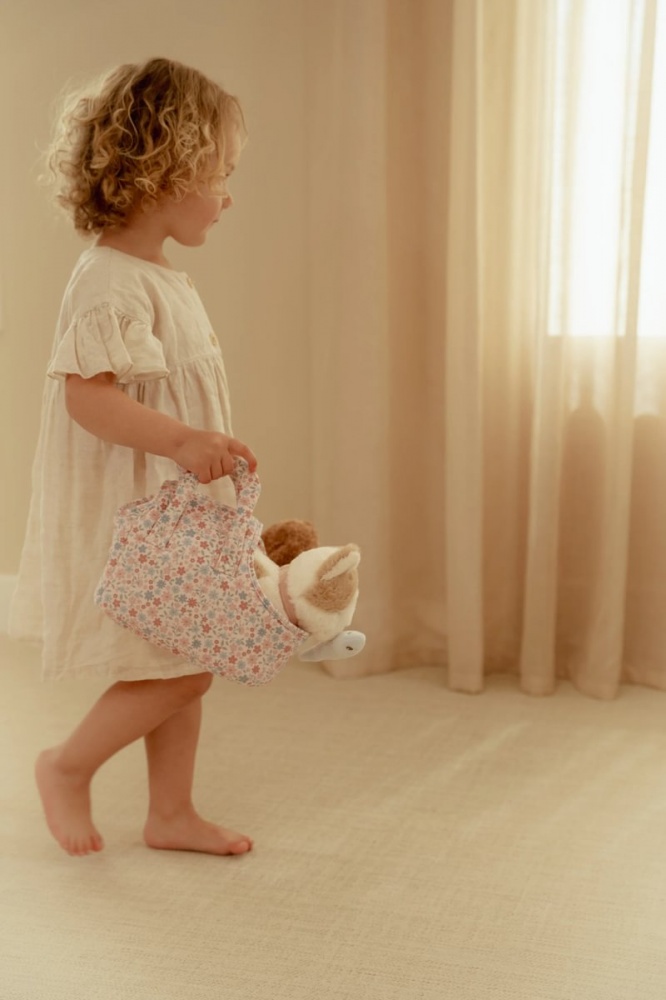 For little cat fans, here is Marley - Little Dutch's cuddly cat in a beautiful floral bag. With a soft coat and a cute collar, Marley is sure to become a beloved companion. The bag has an opening in the front where the cat can curiously stick his head out. And of course, the set also includes a toy fish - because playing and cuddling are Marley's favorite activities.