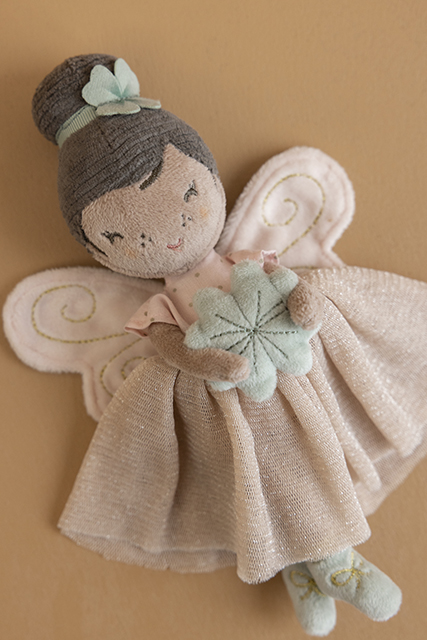 With her pink dress, brown hair in a bun, gold threaded wings and ballerina shoes, Ella will charm all children to play and have fun. This lovely fairy will stimulate imagination, bring fairy tales to life and sparkle the magical time of childhood.