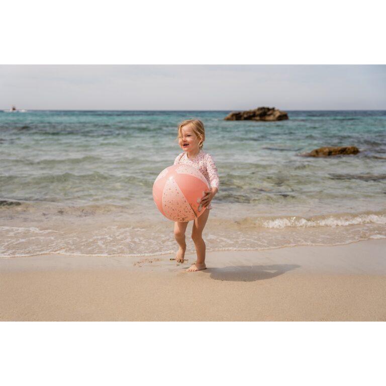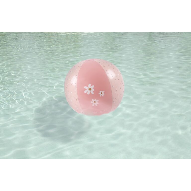 This beach ball is easy to inflate and offers hours of fun. The ball features familiar, Little Pink Flowers-themed illustrations. Lilly the butterfly graces one side of the ball, and the other side shows cheerful daisies.