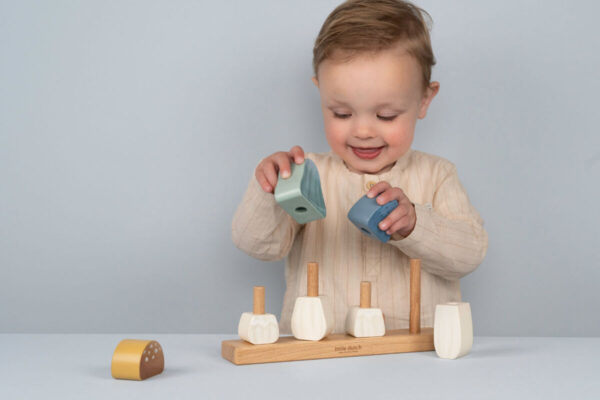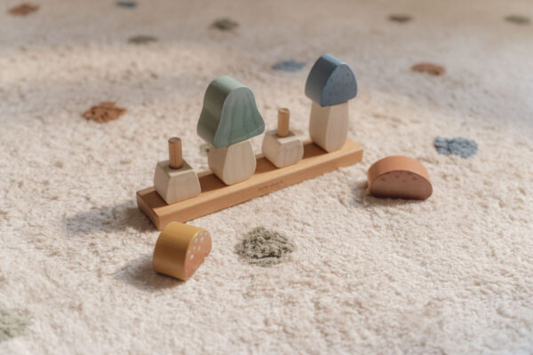Let's build a forest of mushrooms together! Mix and match the blocks and create a row of four enchanting mushrooms from the Forest Friends collection. Place the blocks onto the holder one by one and practice your hand-eye coordination. A fun play and learn stacking puzzle that also makes for a lovely decorative ornament in your nursery.