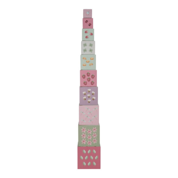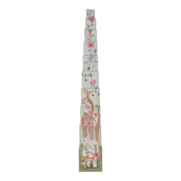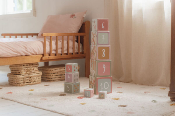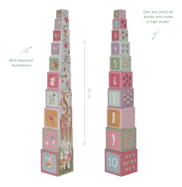 Stack one block on top of the other and see the magic of Fairy Garden grow! You can stack the blocks to build a tall tower, or lay them on the floor horizontally. Discover four enchanted scenes within. Construct a floral branch held by the loveliest woodland creatures. Organise them by numbers in two different ways or collect the individual pictures of garden elements. With these building blocks, children will playfully learn to count to 10.