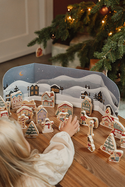 Open a package from the advent calendar every day in December to build your own Christmas village as the holidays draw near. The box features a sturdy cardboard back with winter-themed illustrations and 24 gift boxes containing 25 wooden figurines. Go skating in the plaza, buy your Christmas tree at the stable and ride your sleigh all around the village. After 24 days, Christmas will finally arrive!