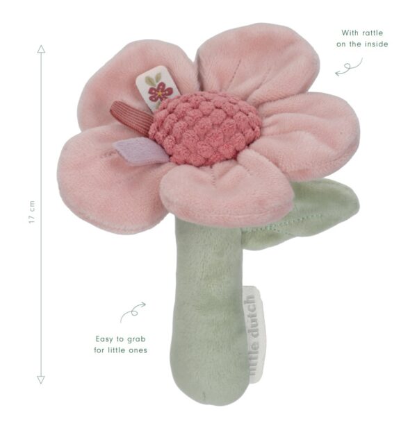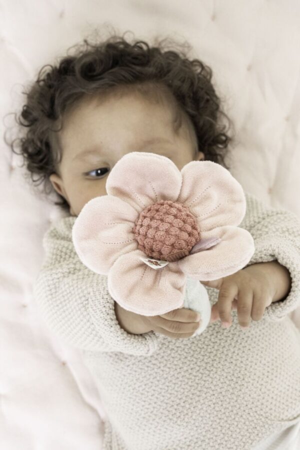 You will hear a pleasant sound every time you play with it. The hidden crinkly paper in de flower’s leaves make the flower extra fun. The rattle stimulates the hand-eye coordination, is made of wonderfully soft materials and can easily be grasped by small children's hands.