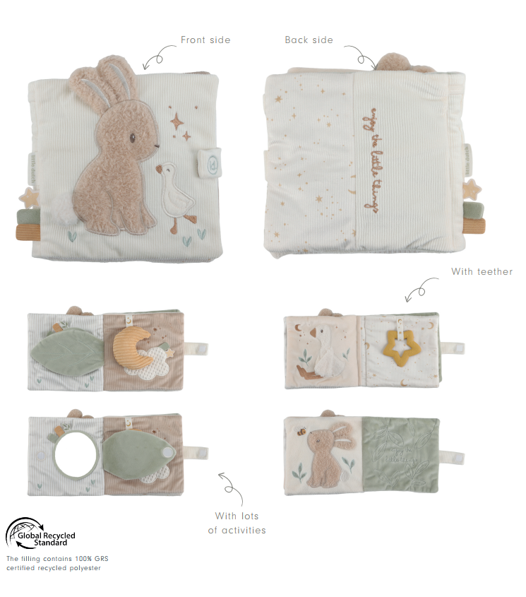 This colorful touch-and-feel playbook from Little Dutch features a cute bunny and a goose. Babies will enjoy exploring the different pages, as the book includes a rattle, mirrors and sound-making objects. Also, there are many different materials and textures. The different fun pictures and elements on the pages of the playbook will keep your child busy - the perfect travel companion. This toy not only stimulates the senses, but is also ideal for developing your child's hand-eye coordination. You'll never get bored with this activity book!