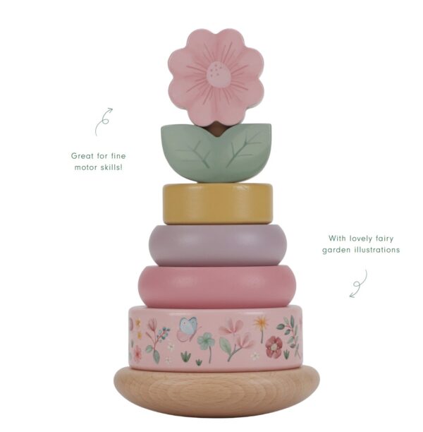 Take on the challenge of stacking rings on the rocking base! It’s an engaging game that demands your full attention. Stack the rings in the correct sequence, aiming for the flower to crown the tower. This lovely wooden rocking ring stacker from the Fairy Garden collection is designed to develop children’s hand-eye coordination through fun and hands-on play.