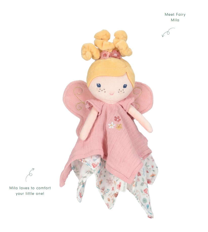 Let your little one dream away in a world full of cheerful flowers with this beautiful fairy cuddle cloth. Her soft wings, embroidered details, blonde hair and light pink dress make her perfect for small hands to grab and hug. This fairy stimulates the senses and offers comfort and security. Ideal for naps or on the road! Tip: such a unique cuddle cloth is also a great maternity gift.