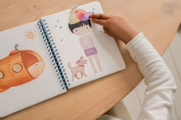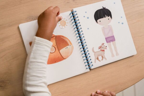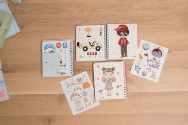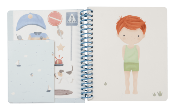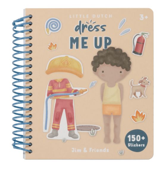 What will you wear today? With this Little Dutch Jim & Friends dress up book, you decide what clothes Jim and his friends wear. The book contains 24 pages of images of Jim, his friends and cool vehicles, among others, as well as 12 pages of stickers of the very coolest uniforms and accessories the boys can wear and use. Whether you choose to become a fireman or an astronaut: it’s up to you. The book is made of sturdy cardboard with recognisable Little Dutch designs and colours and has a handy ring binder. The ideal activity for at home and on the go!