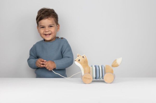 Crafted from sturdy wood and adorned with colourful rings, this pull-along deer not only provides endless entertainment but also promotes walking and enhances motor skill development.