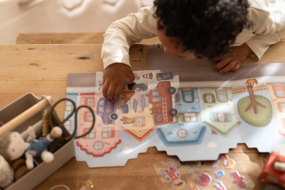 Come and show your creativity! The Little Dutch “Jim & Friends” sticker set with reusable stickers is full of playful details that develop a child’s imagination.