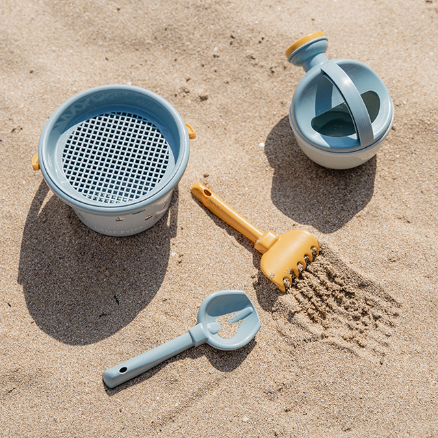 With the bucket, shovel and rake, watering can and sand sifter your little one is good to go for hours of fun in the sand.