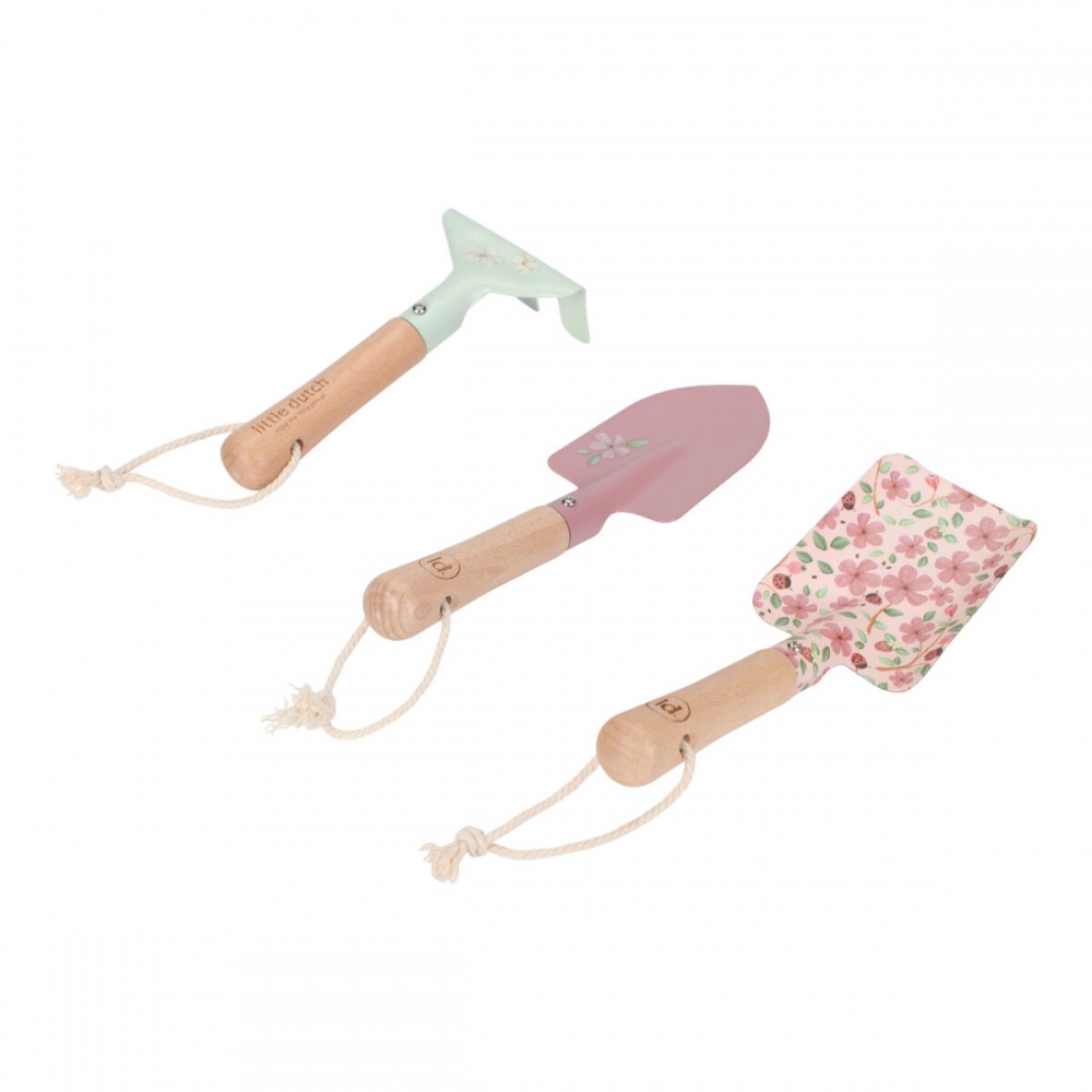 Discover the perfect Little Dutch tool set for little gardeners! This beautiful garden tool set from the Fairy Garden collection is perfect for any little nature lover. The set includes two spades/hoes and one rake (weeder), made of durable metal and equipped with wooden handles for easy grip. Each tool is decorated with charming illustrations and subtle colors, perfect for little explorers' garden adventures. The practical hanging cords make it easy to hang the tools after gardening. The perfect set for little hands and big green fingers! 🌱🌼🌿
