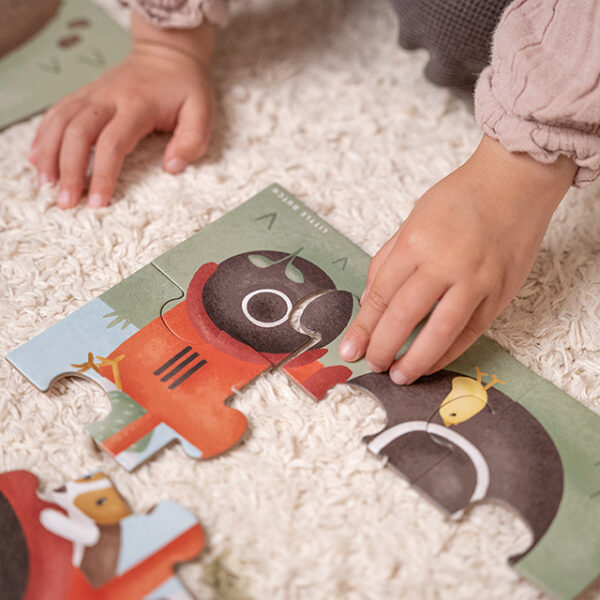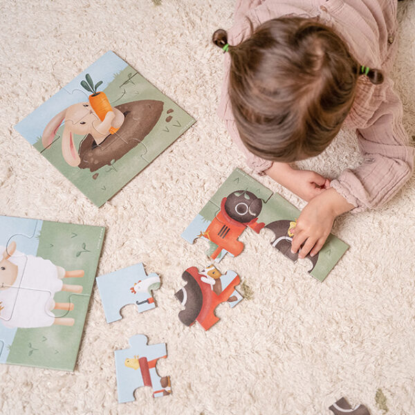 Every puzzle has a different level, from 4 pieces to 16, to develop your child's puzzle and fine motor skills step by step. The puzzle pieces are made of sturdy cardboard and their size is perfect for children aged 3 years and older.