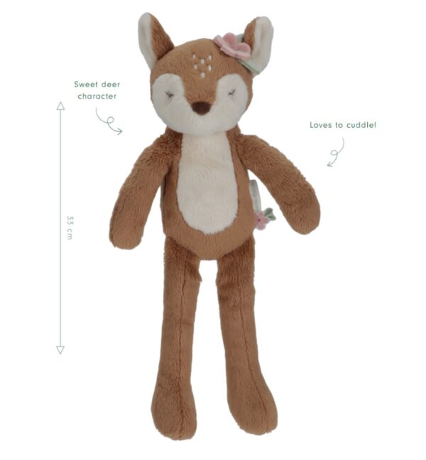 Come and give this cuddly deer a hug! With her lovely grin and open arms, she invites you for cuddles and play. Her charmingly long legs make it easy to carry her with you, no matter what the day brings.