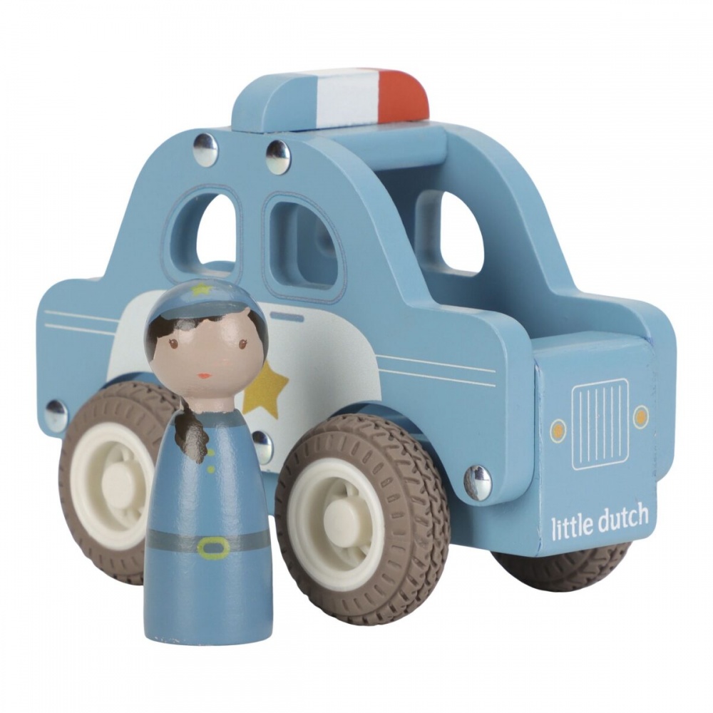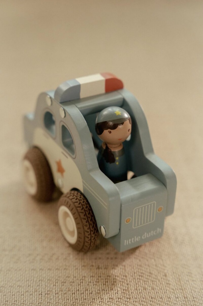 Emergency? The Little Dutch wooden police car speeds to the scene of the crime! Rubber wheels ensure a smooth ride and a tough cop behind the wheel is ready to keep the city safe. Play out exciting chases and put the criminals behind bars. This police car is ideal for role-playing and fits perfectly with the wooden police station playset. Who are you helping in town today?