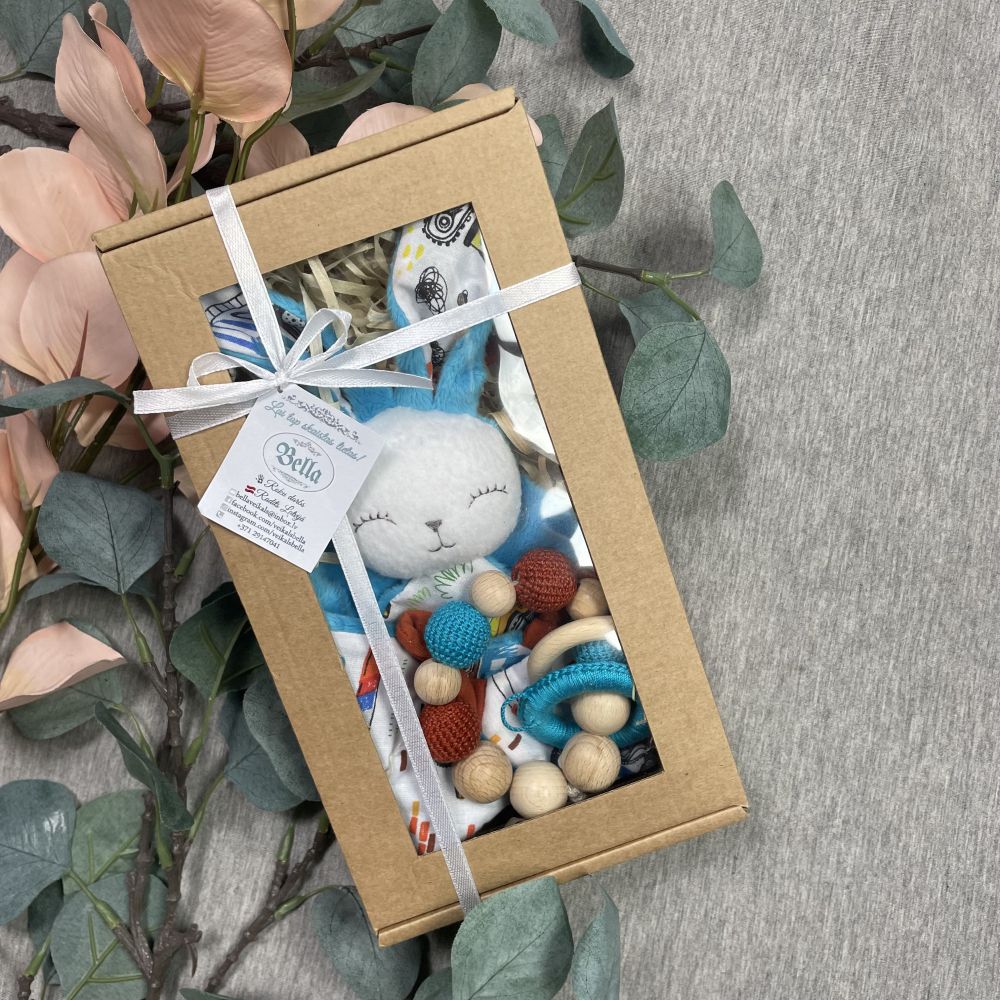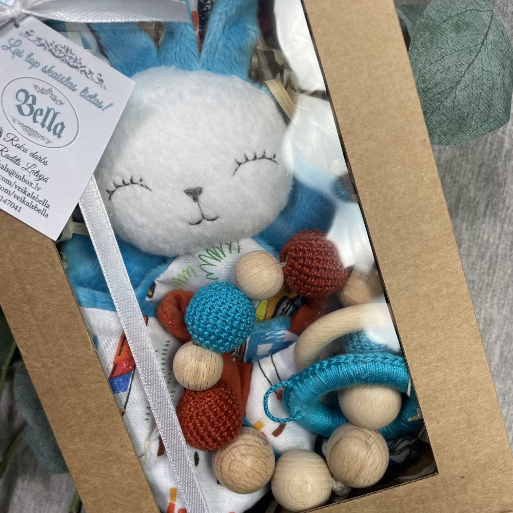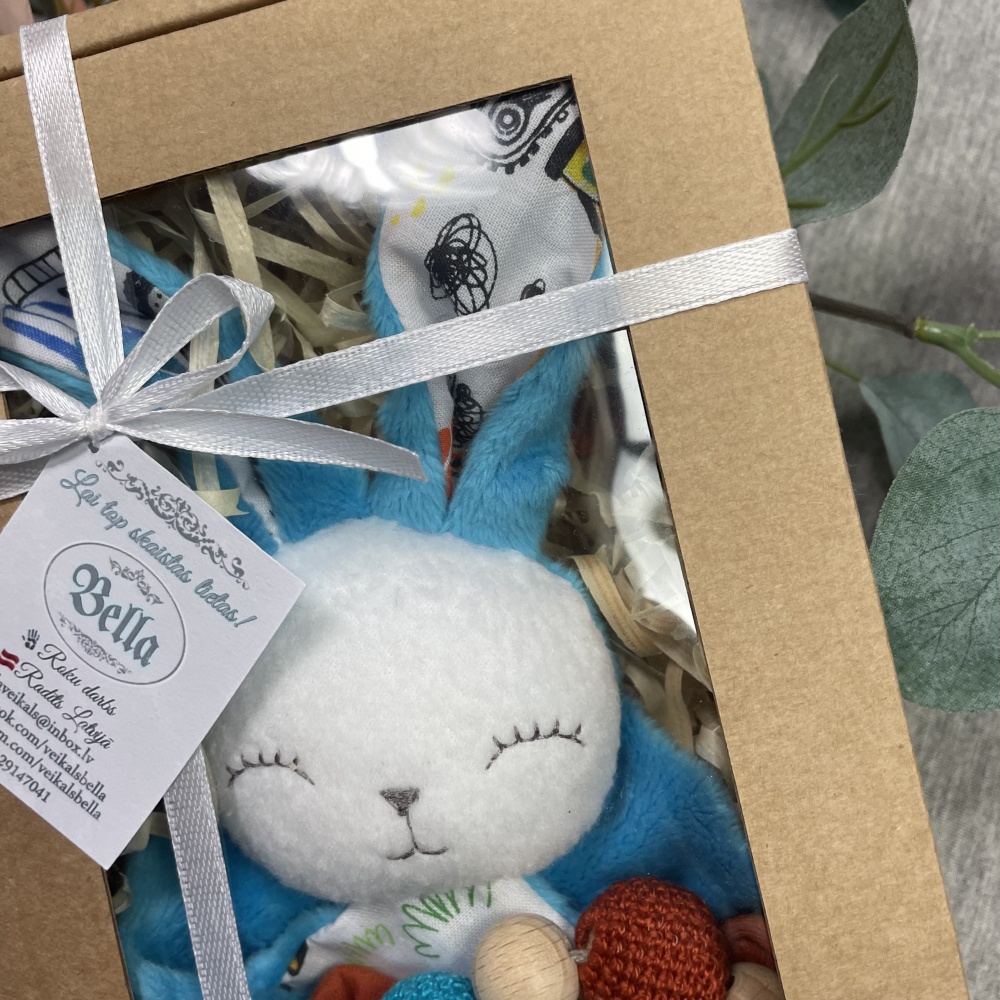 Gift set- Bella cuddly bunny and gnawing ring, Turquise
