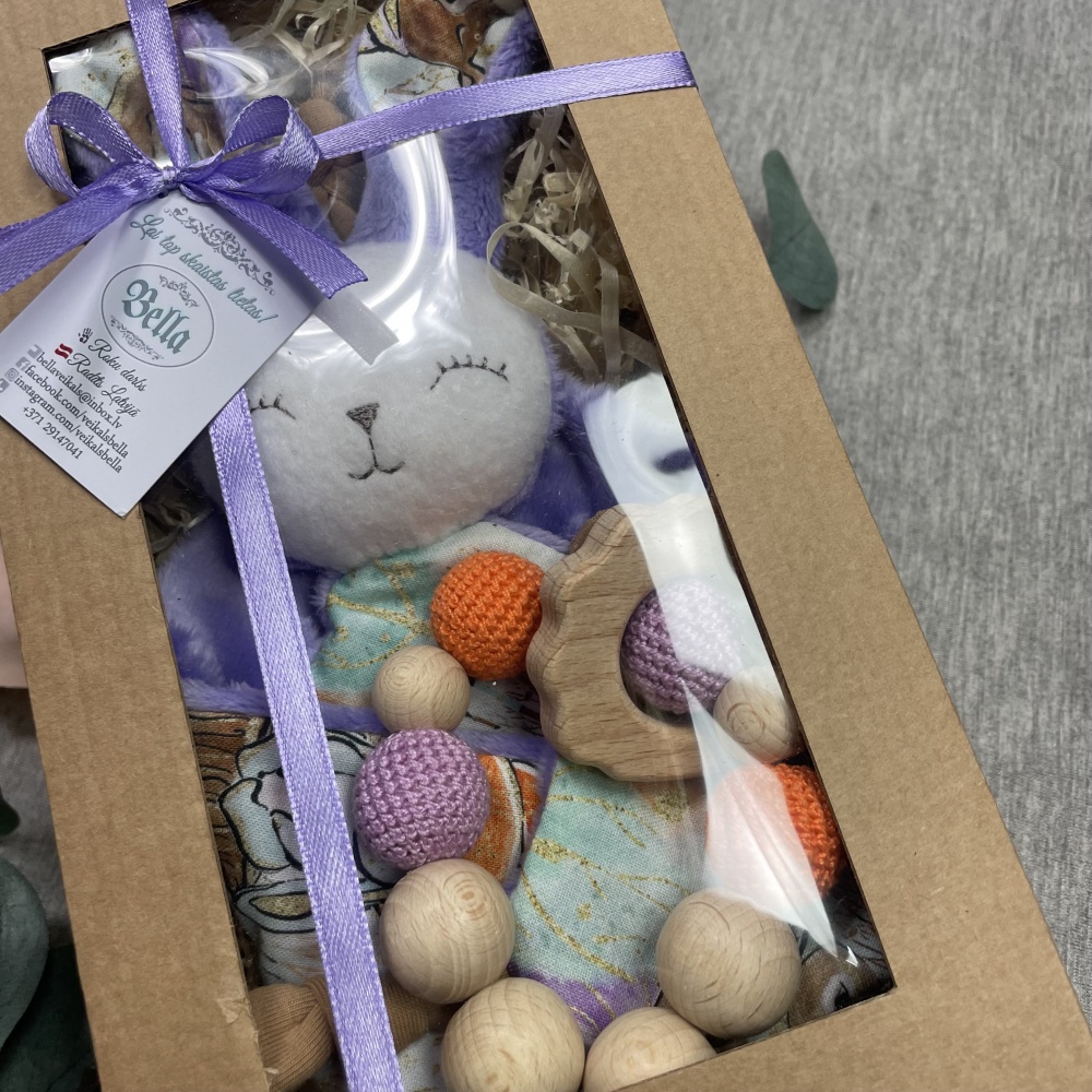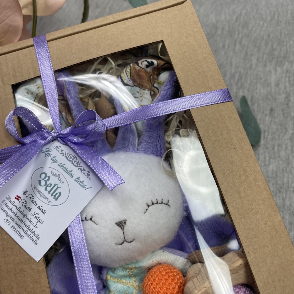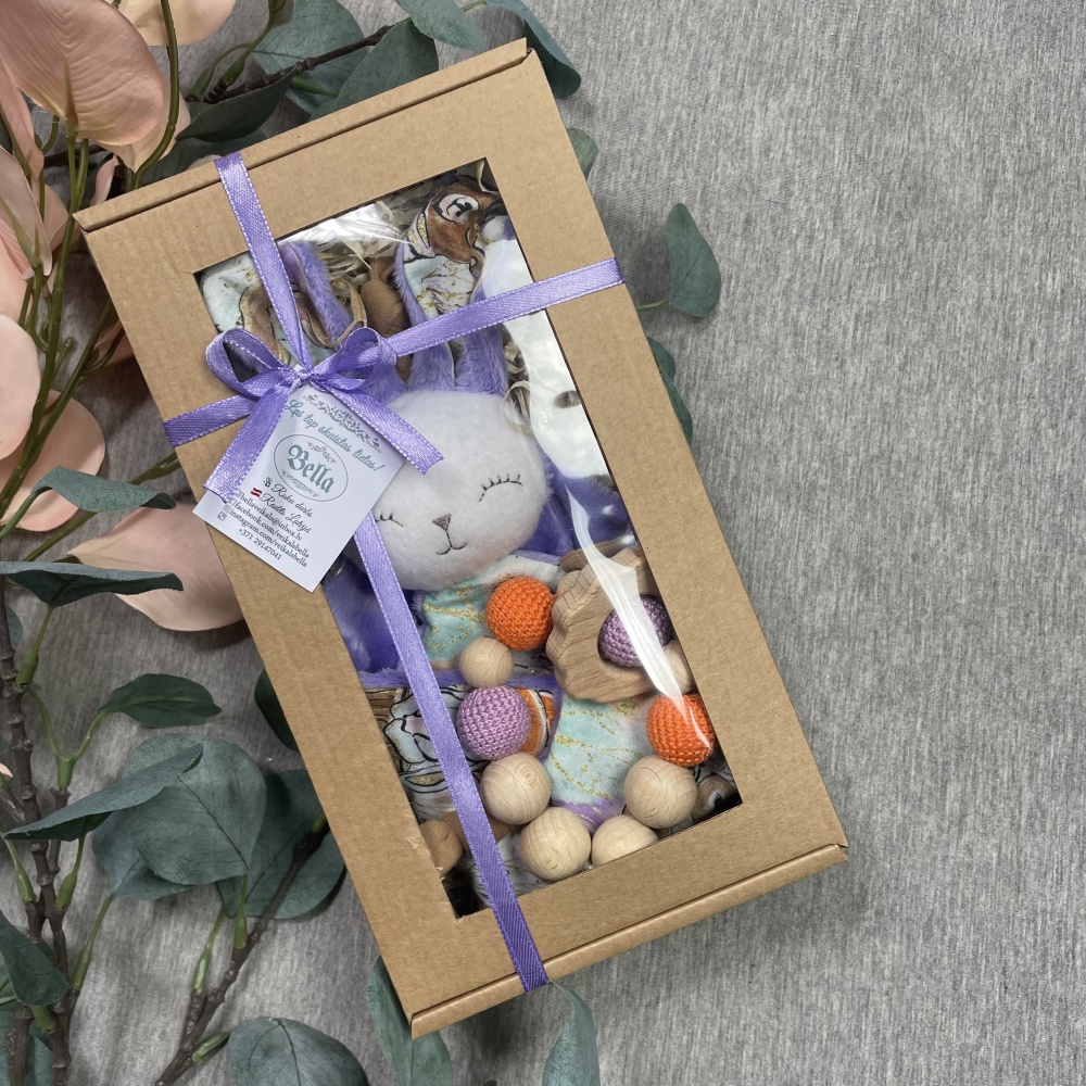 Gift set- Bella cuddly bunny and gnawing ring, Purple