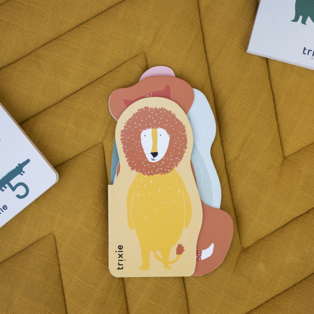 Discover all our animal friends, ranging from goofy flamingo's to roaring lions!This book is made from strong FSC© cardboard and soy ink.
