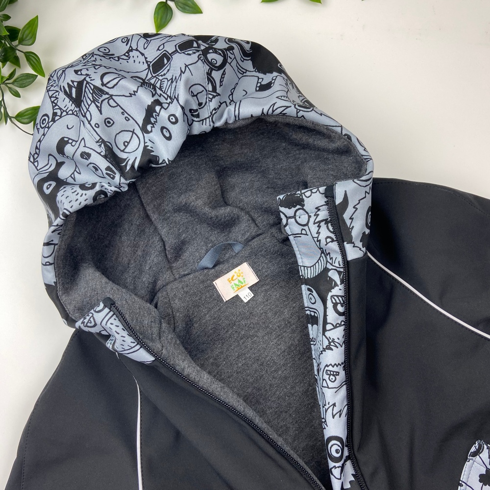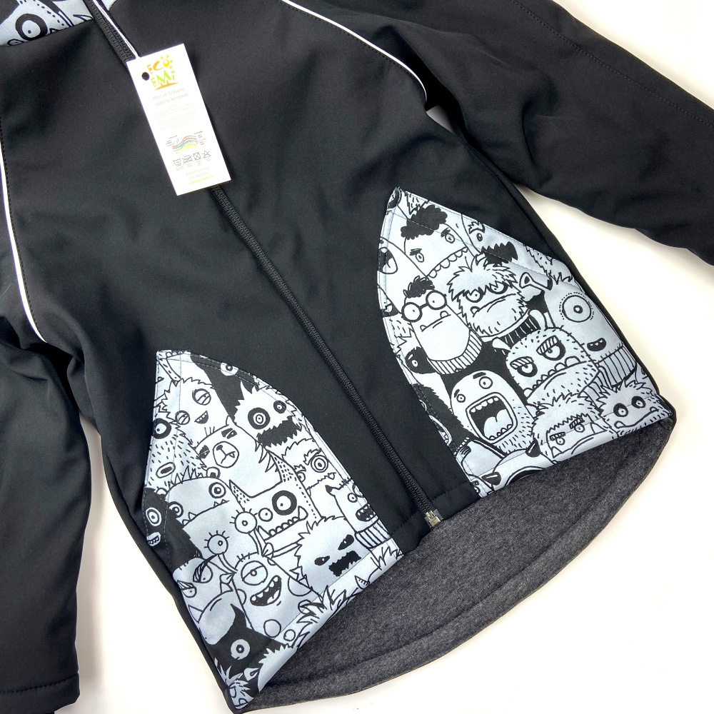 Softshell jacket with fleece inner, BLACK / MONSTERS