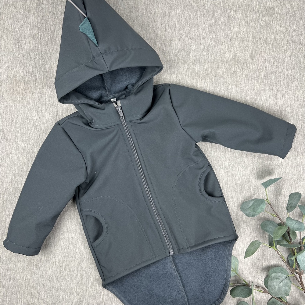 Your kid will love this Softshell jacket with dinosaur spikes. This dinosaur jacket makes a cool gift for the kids one on your list! Our dino hoodie jacket top will be not just fun for pretend play and equally matched for hanging out but it's also perfect for rainy days - Softshell fabric is windproof and waterproof!