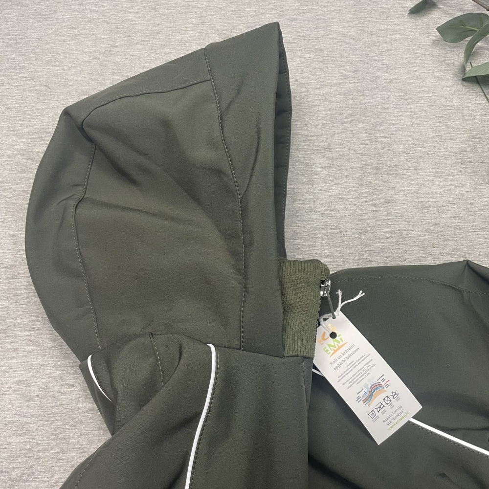 This Softshell jacket is perfect  for  autumn and spring, when the air temperature is between 0 and + 20 degrees. It has microfleece inner (lining), so it feels nice and soft inside.