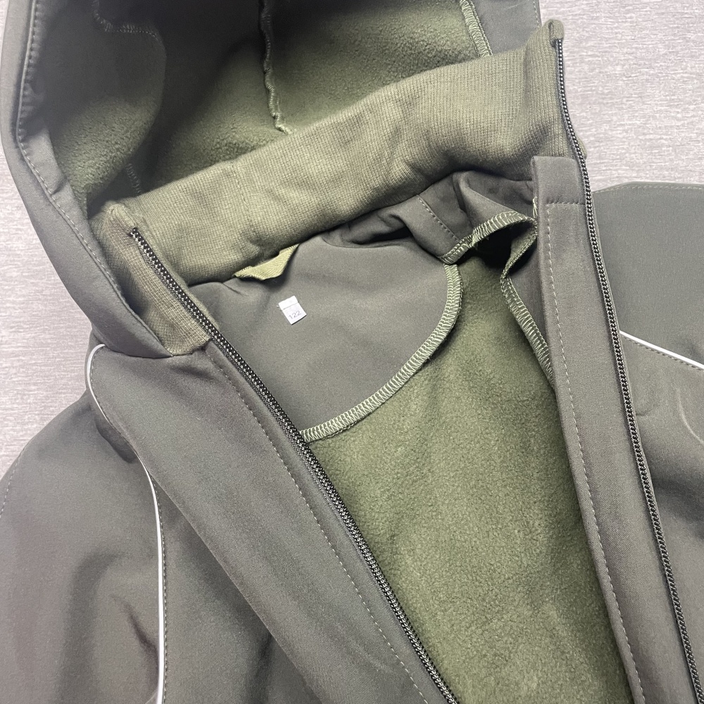 Multilayer fabric Softshell with microfleece inside: 94% micropolyester, 6% polyamide, inner 100% microfleede - 100% polyester.