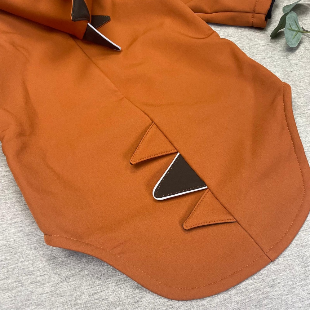 Your kid will love this Softshell jacket with dinosaur spikes. This dinosaur jacket makes a cool gift for the kids one on your list! Our dino hoodie jacket top will be not just fun for pretend play and equally matched for hanging out but it's also perfect for rainy days - Softshell fabric is windproof and waterproof!