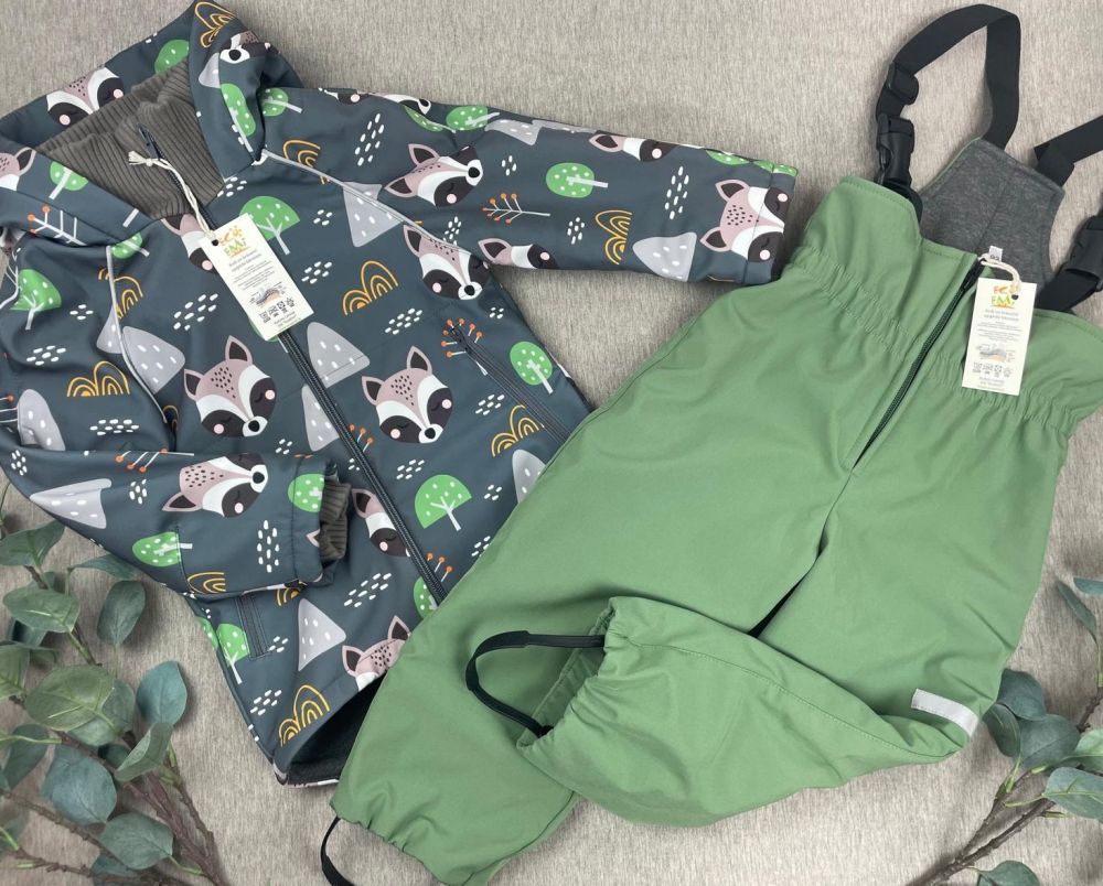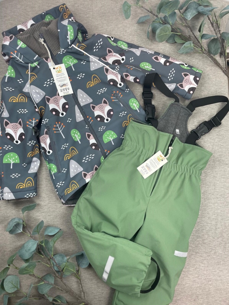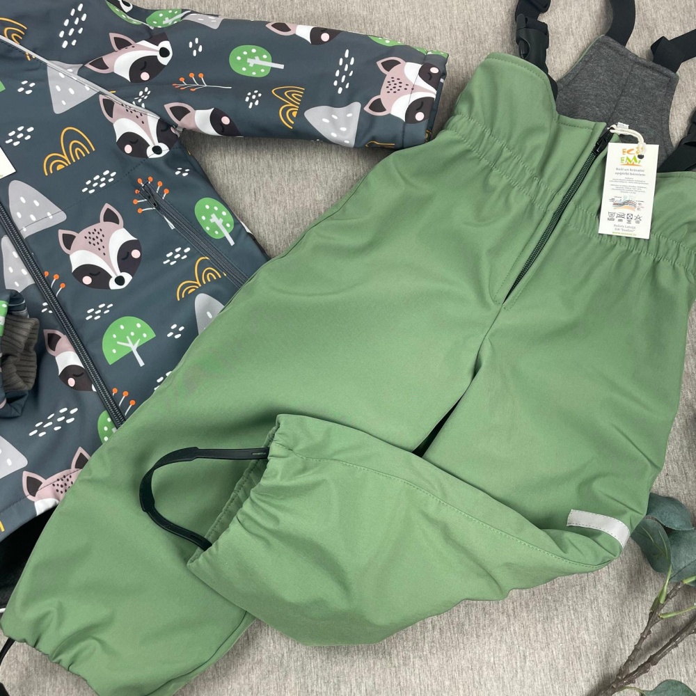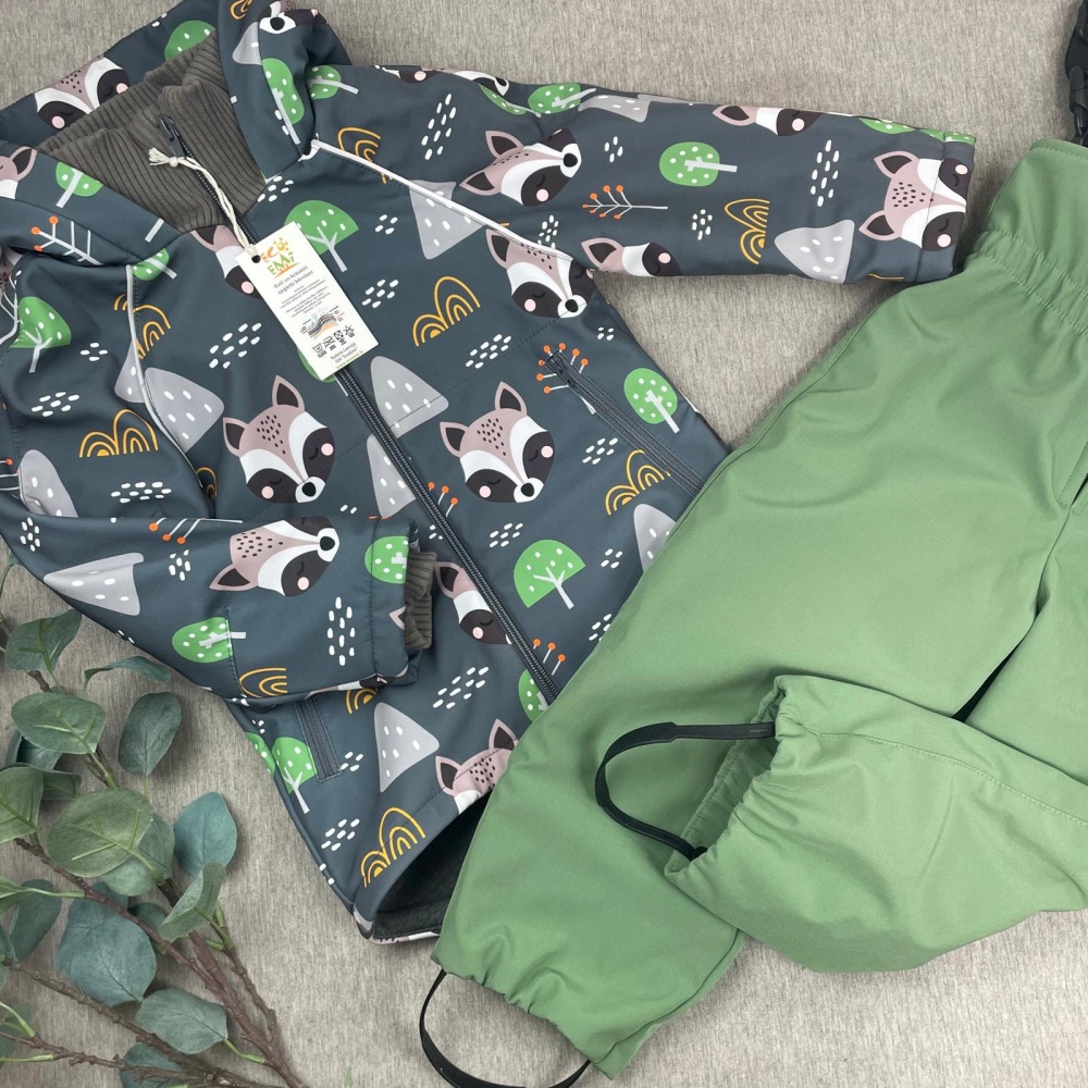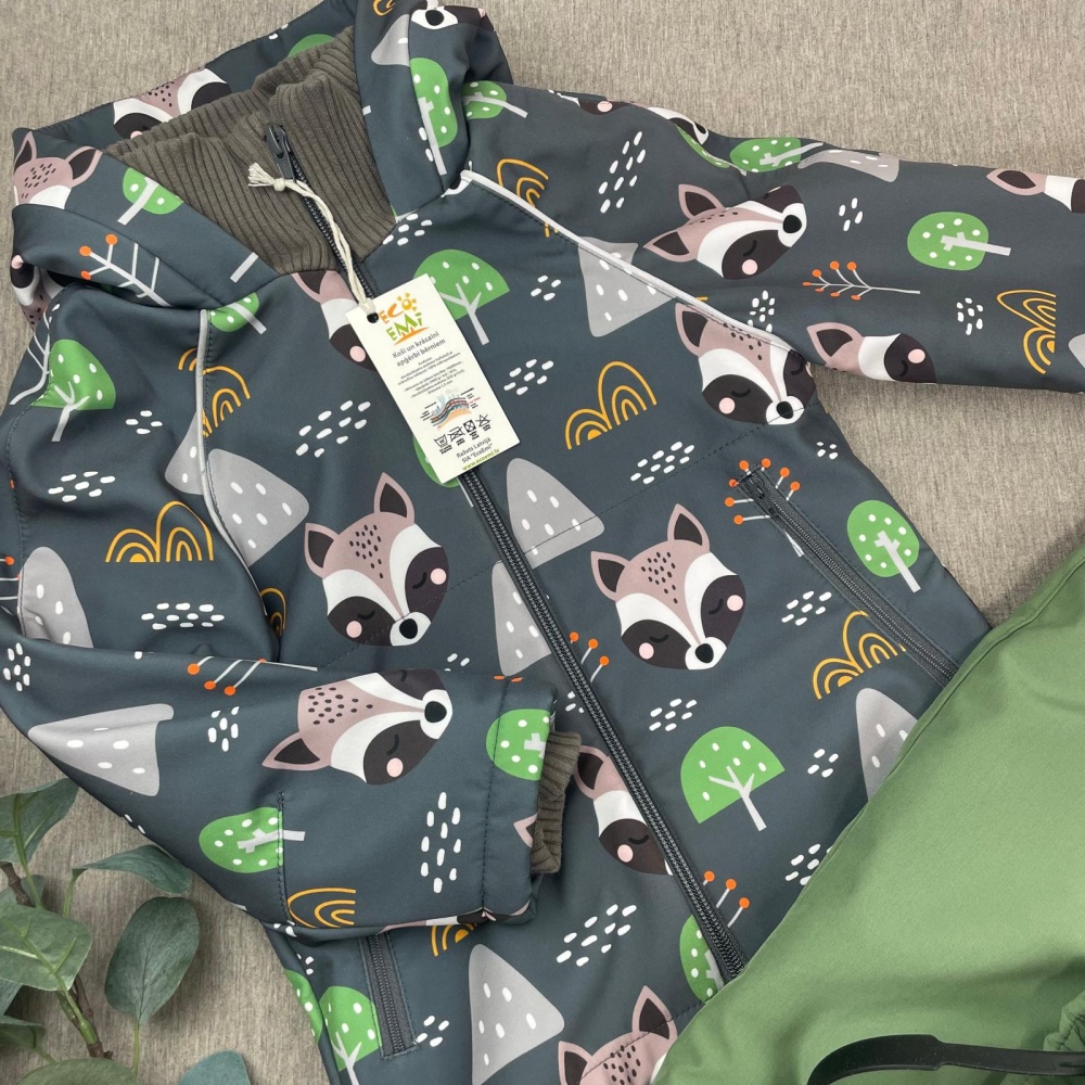 Softshell set with cotton fleece inner, RACCOON / modern mint