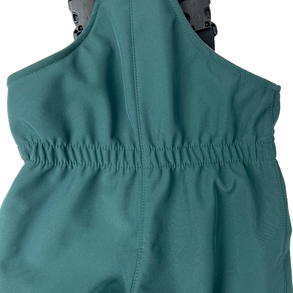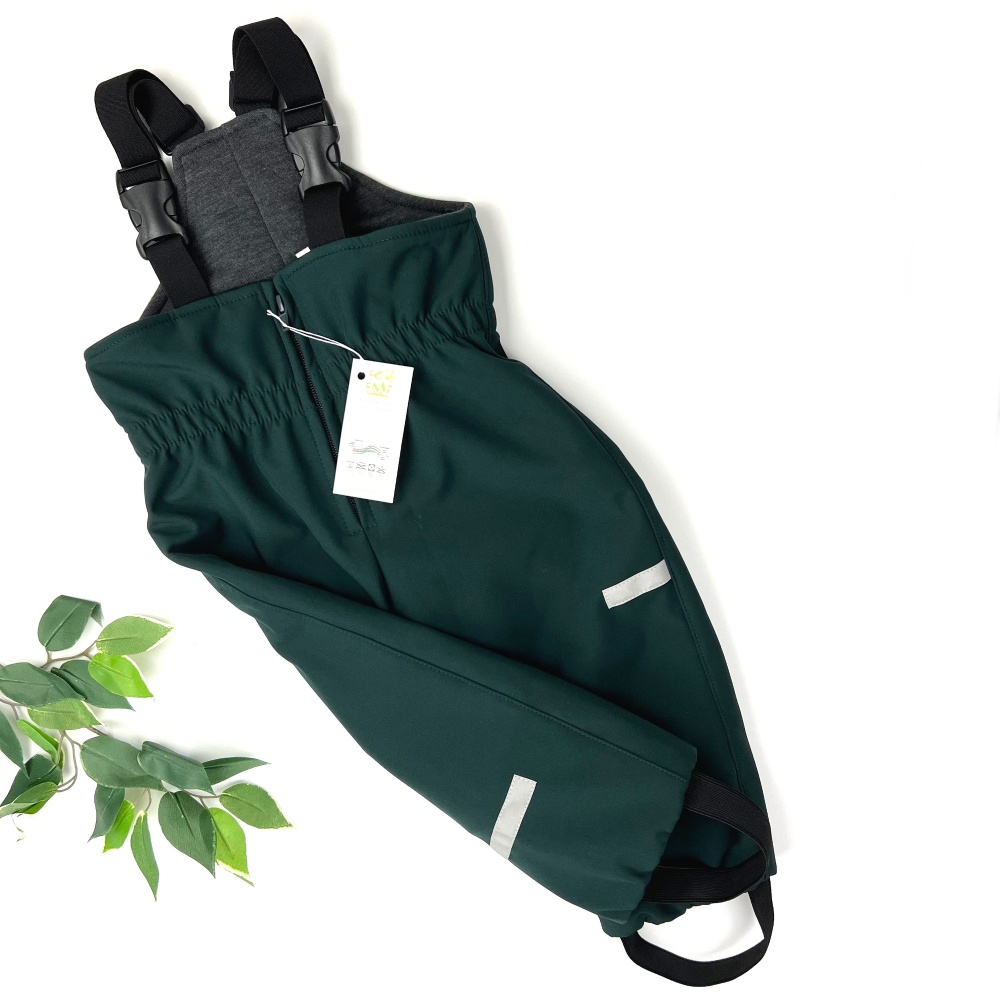 Pants have raised waist, so the kids back will always be warm. Adjustable strap length.