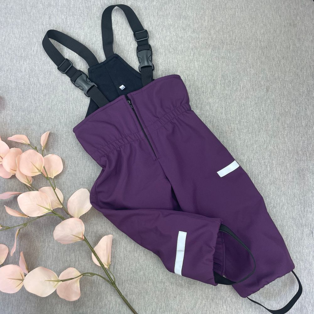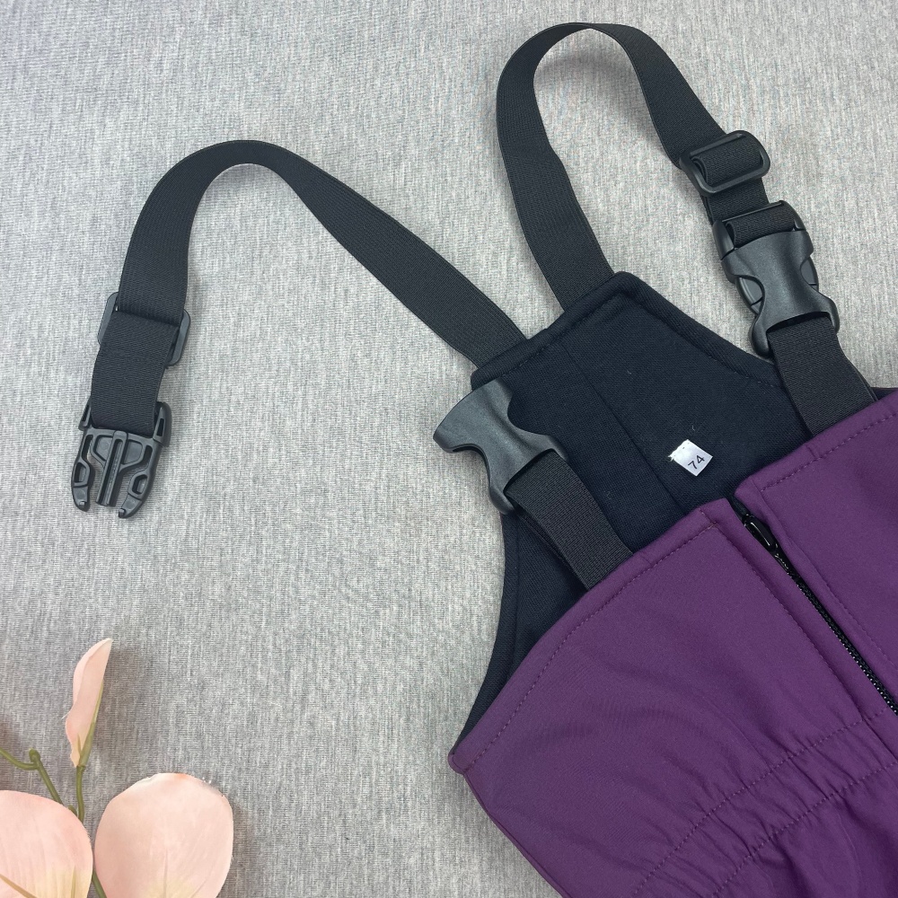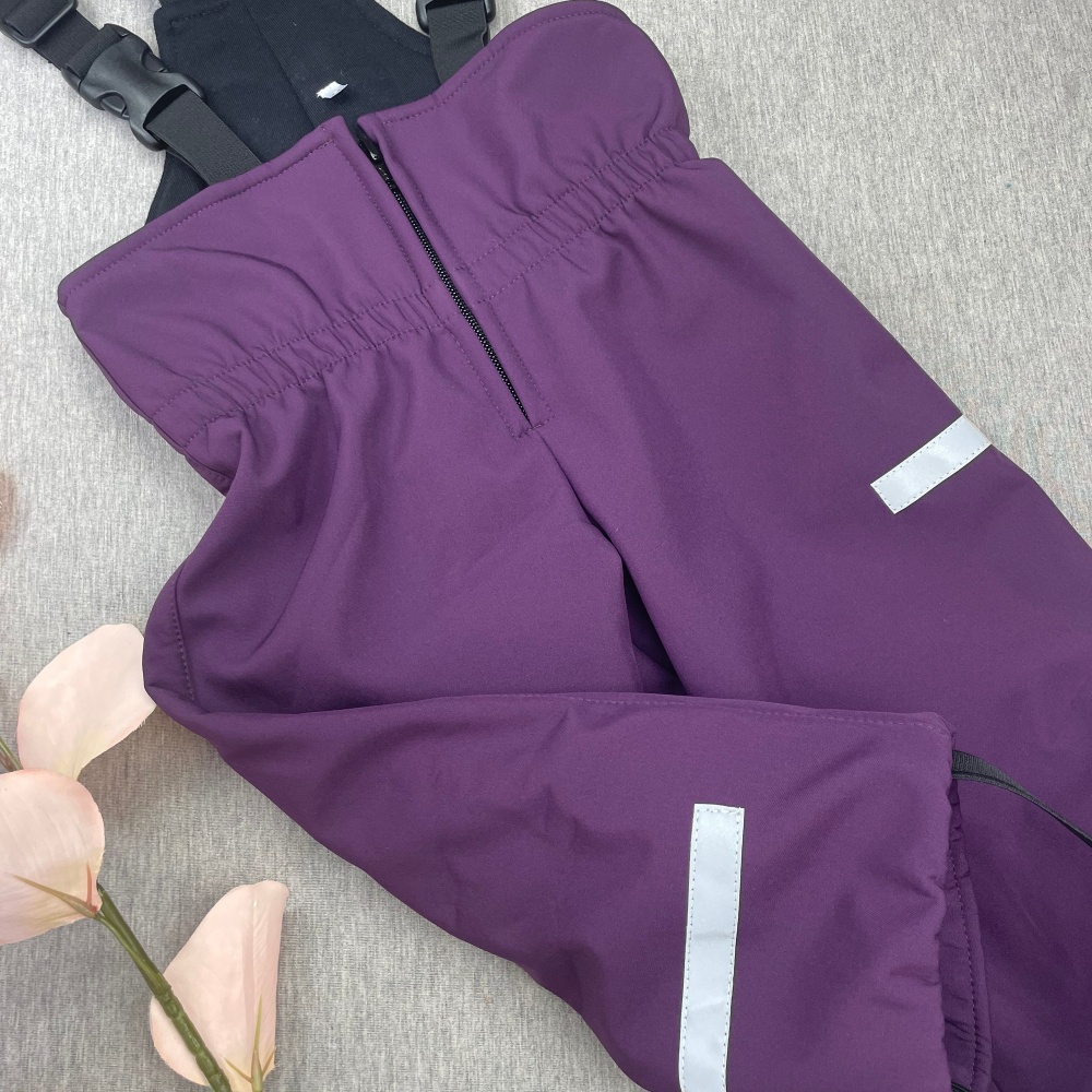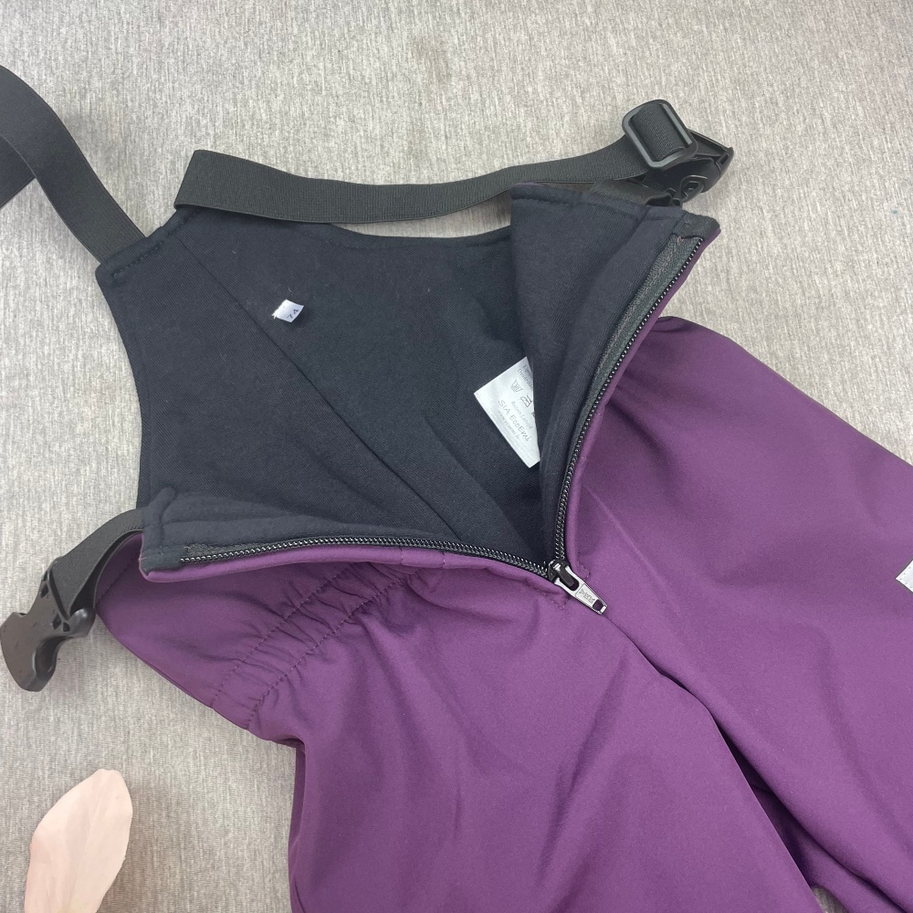 Pants have raised waist, so the kids back will always be warm. Adjustable strap length.