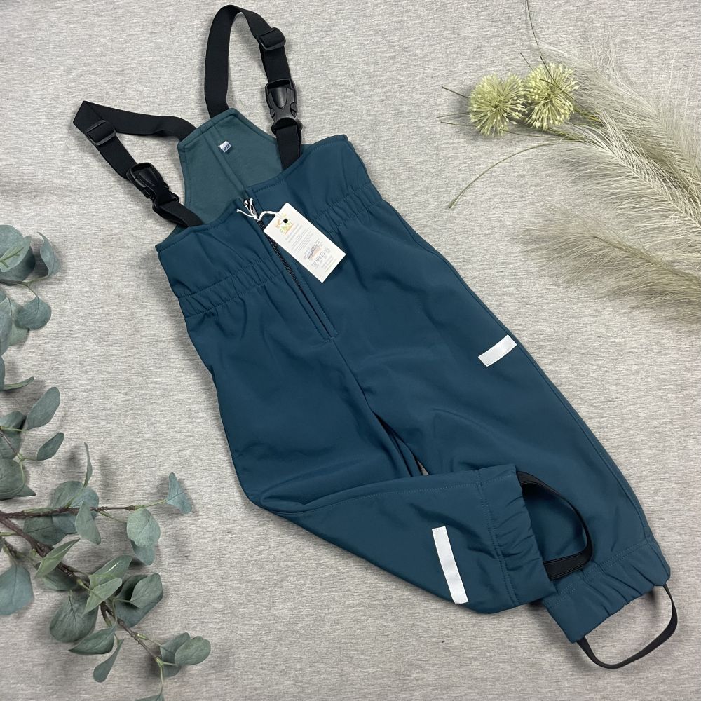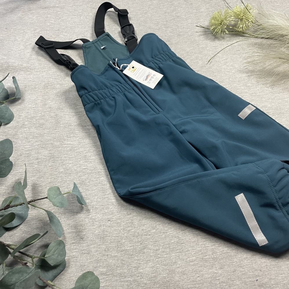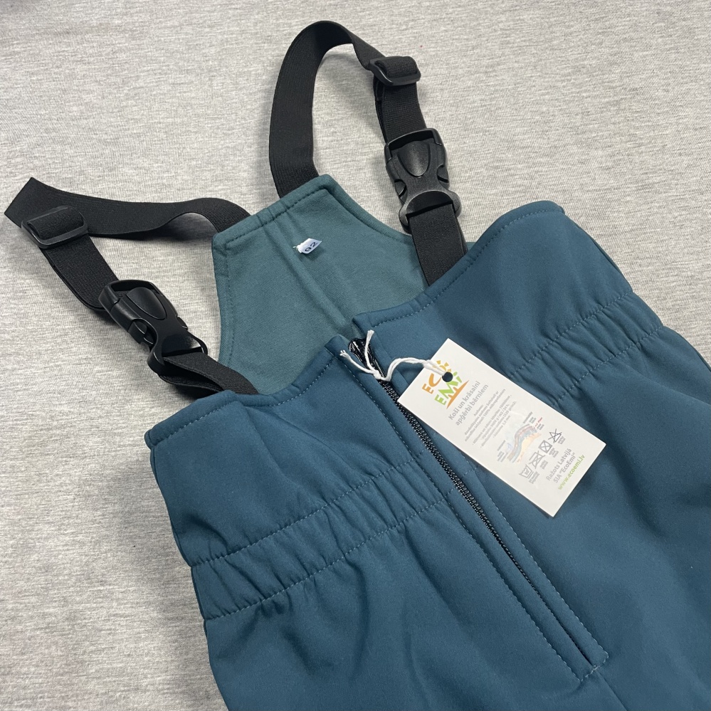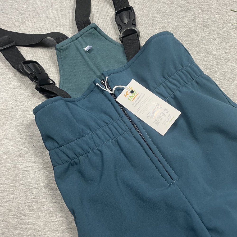 Pants have raised waist, so the kids back will always be warm. Adjustable strap length.