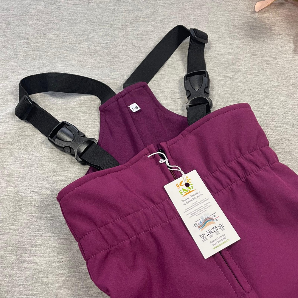 Pants have raised waist, so the kids back will always be warm. Adjustable strap length.