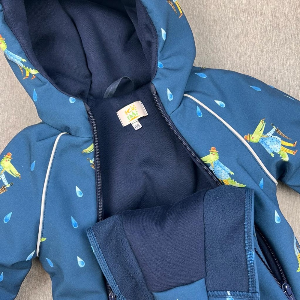 Wind and moisture proof Softshell overall with cotton jersey additional inner - layer.
