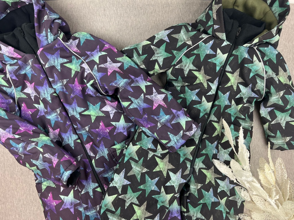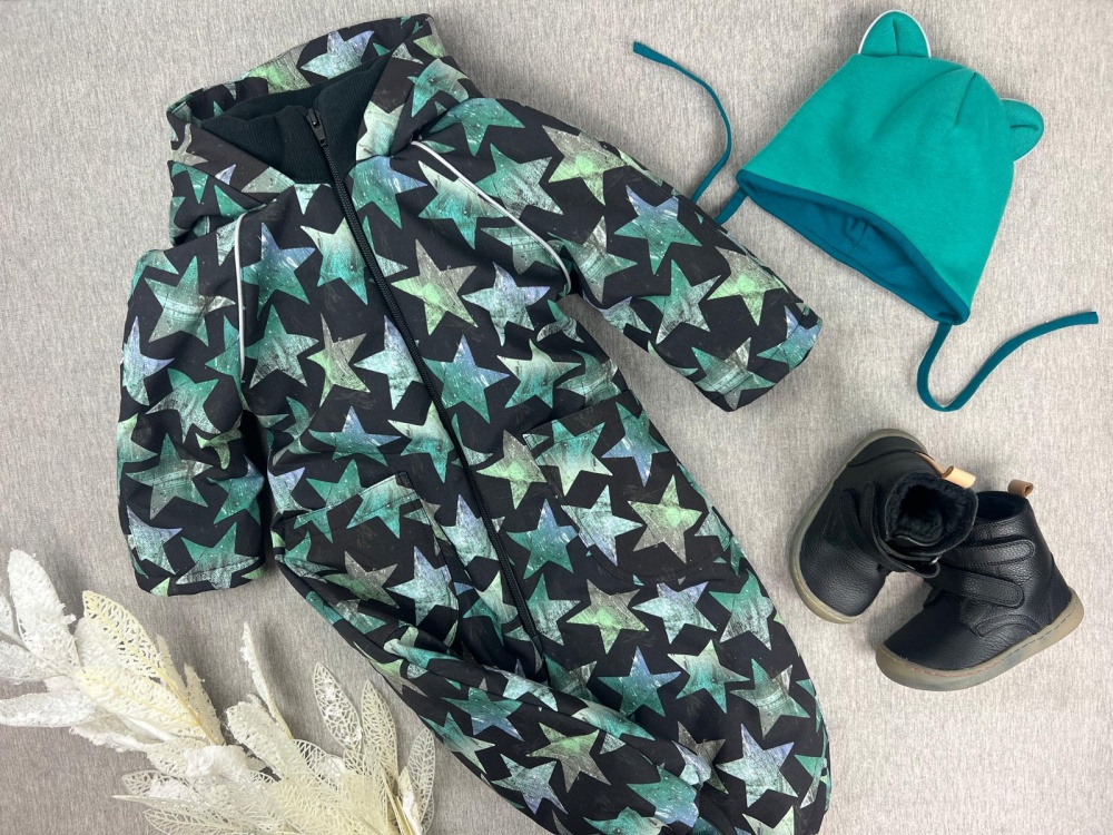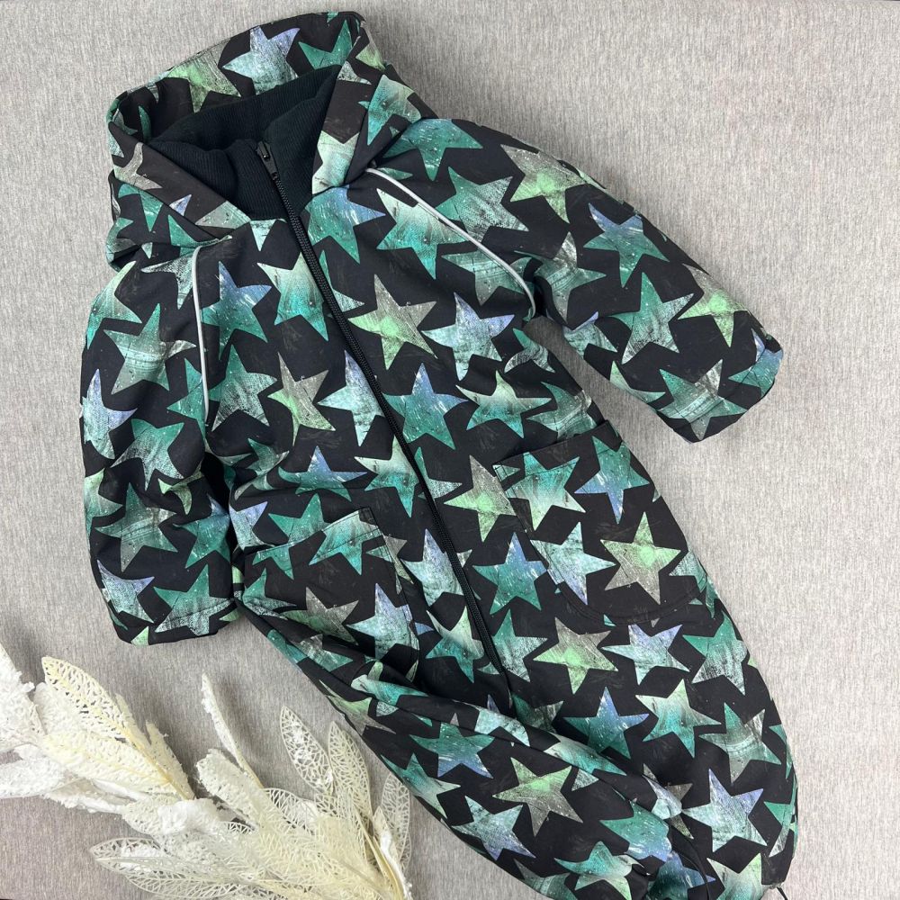 Insulated WINTER softshell suit Green stars on black