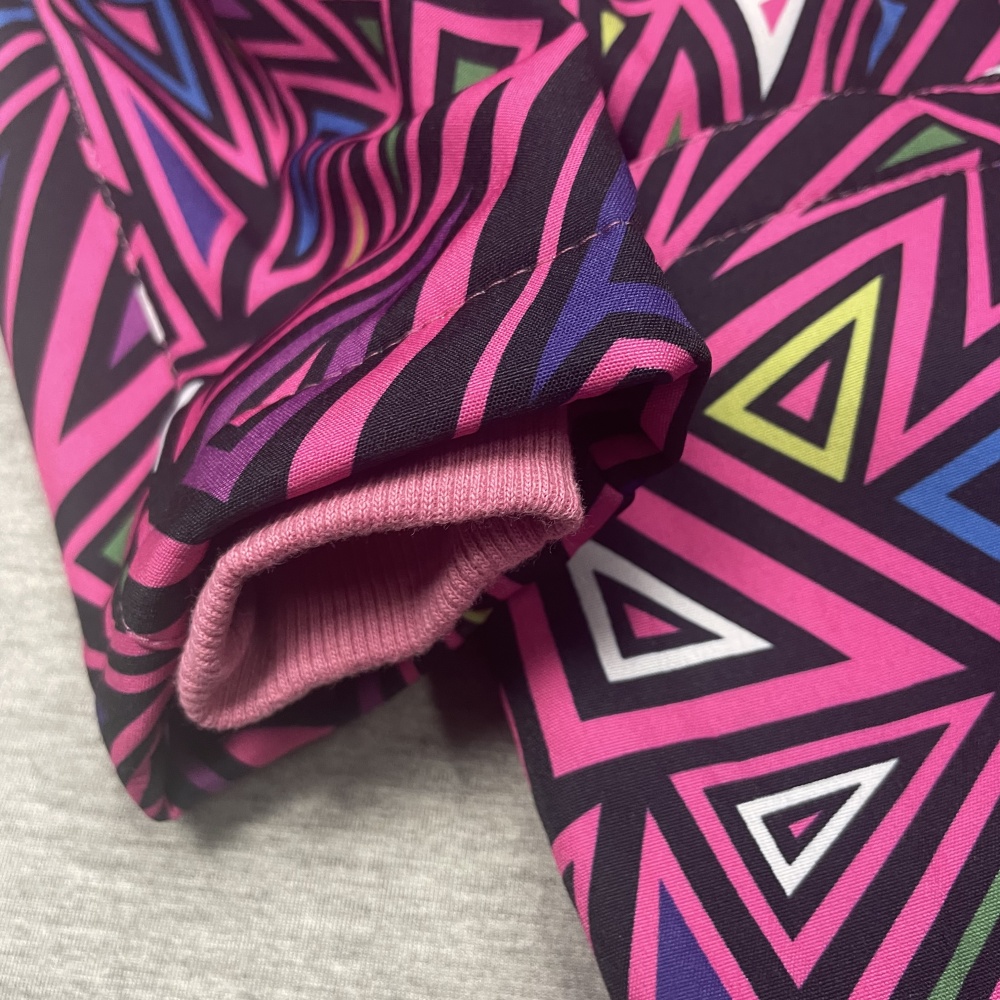 - elastic, black fabric arm cuffs at the ends of the sleeves for warmth and comfort
