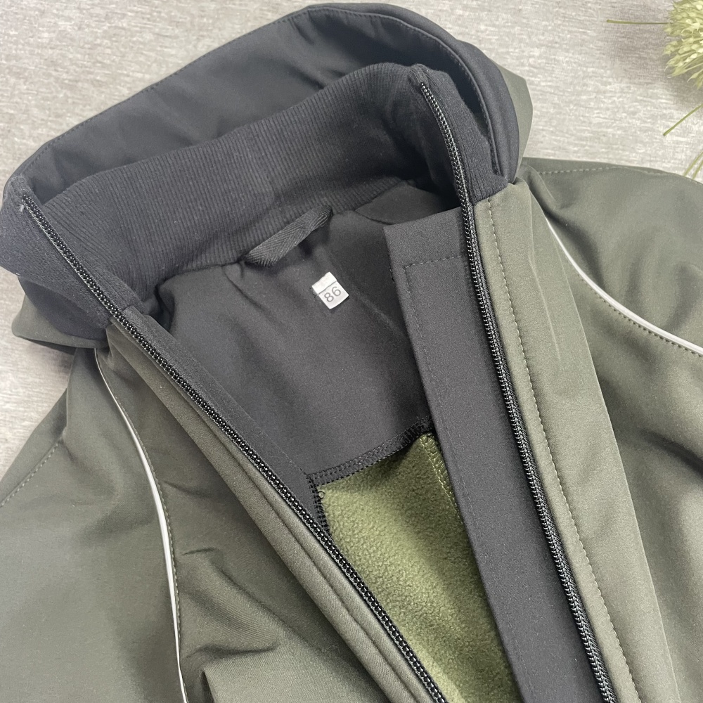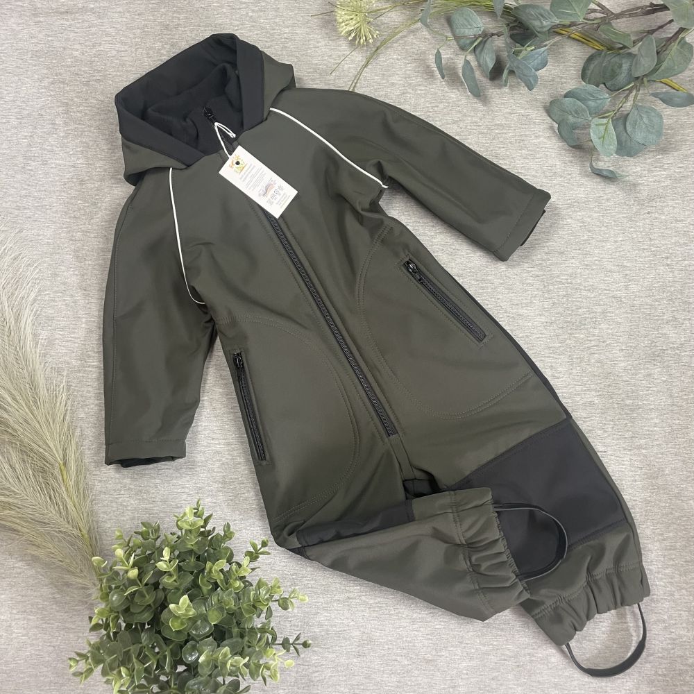 Softshell MID-SEASON suit with soft microfleece lining, soft neck collar and silicone boot rubbers.